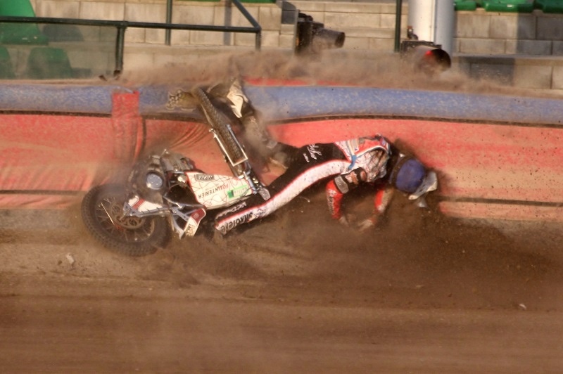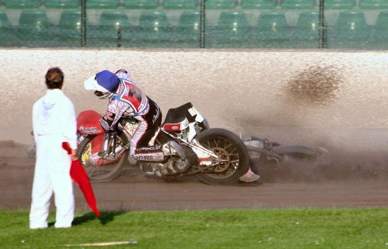 Test match byl předčasně ukončen po hrozivém pádu Matěje, kterého doslova smetl Adrian Miedzinski.